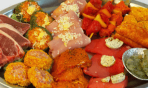 Zonder groenten, 300gr vlees/pp & sausjes.